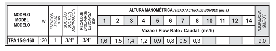 | Materiales | Cuerpo bomba | Hierro fundido |