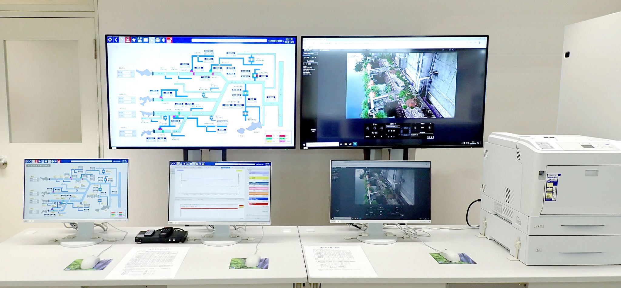 河川系揚排水ポンプ施設、上下水道施設並びに点在する排水機場等を統括的に管理する河川治水システム、