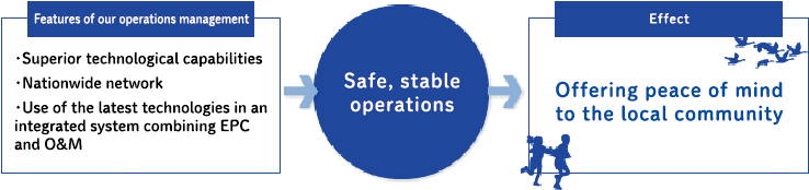 Our track record of contracted operation extends to more than 80 plants in Japan. Our ample experience, expertise and the networks that we have cultivated as we have established an industry-leading track record enable us to efficiently manage plant operations. Our one-stop service system including design, construction, operations management and maintenance allows us to apply the latest technologies and continuously improve facilities. This gives us an advantage whole we provide customers with value beyond their expectations.