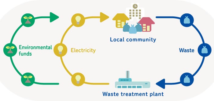 For the initiatives that the power generation from local waste is efficiently used for local consumption. EBARA Environmental Plant has been working toward those initiatives to change the concept of waste disposal (to local production and local consumption of electricity through generating power from waste) which is environmentally friendly and economically reasonable.