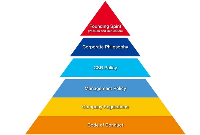 “Both the company and its employees shall strive for growth with passion and dedication to bring forth originality and ingenuity, rather than simply fulfilling the task at hand. When working with passion and dedication there is nothing that cannot be communicated to others.” The founder himself modeled his behavior on this principle, and continually stressed it when addressing employees.