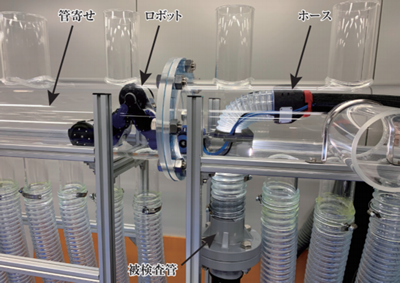 小型走行型水管厚さ連続測定ロボットとラボ試験装置