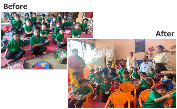 - Upgrading infrastructure in 24 government schools in Maharashtra by providing library books, bookshelves, and toys for children.