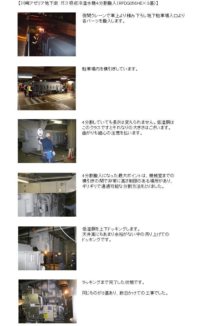 - 搬入路の高さ制限をクリアできるガス吸収冷温水機の缶胴のほぼ中央の高さで分割できる構造