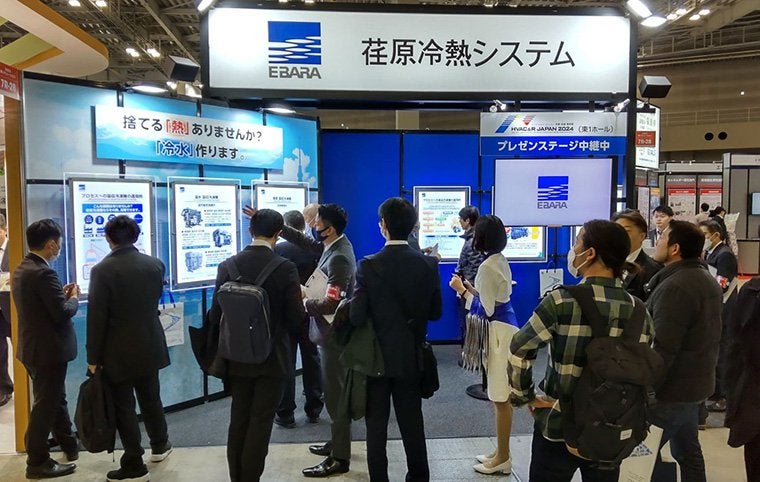 「捨てる熱ありませんか?冷水つくります。」をキャッチコピーに、排熱利用の吸収冷凍機や、グローバルモデルヒートポンプ、そして、それらの用途事例のご紹介や、カーボンニュートラルに向けた当社の製品・サービス技術をパネルや動画にてご紹介いたしました。