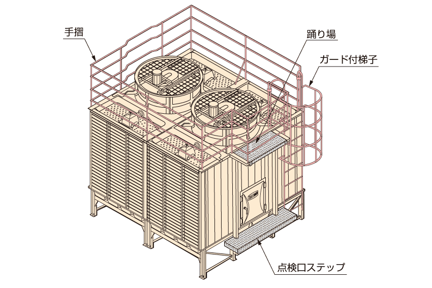 U型冷却塔オプション 上部手摺及びガード付梯子ならびに点検口ステップ