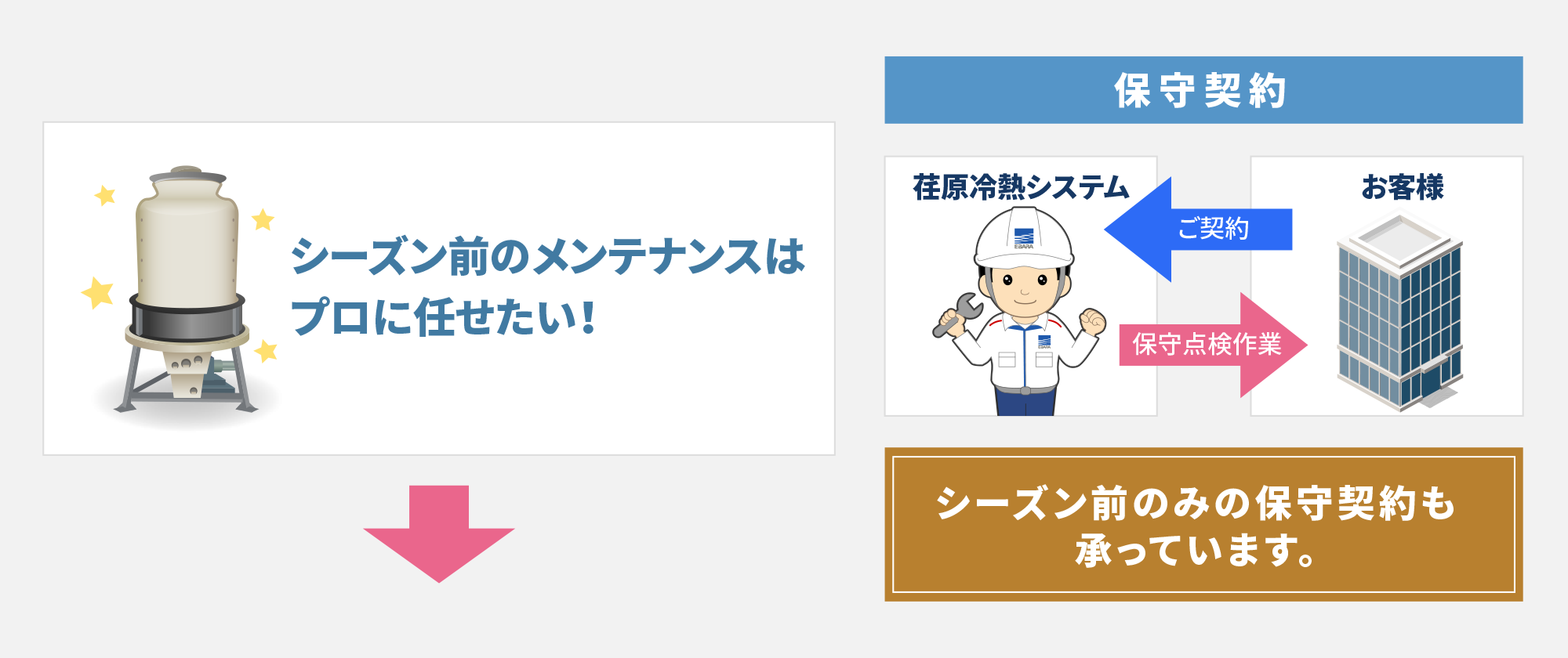 冷却水系設備を安心してお使いいただくために保守契約を受け賜っています。