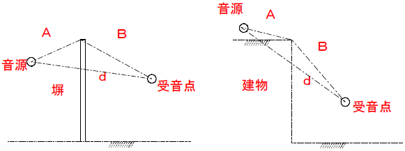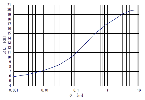 次式により行路差δを求め下記グラフにより減音量を求めることが出来ます。