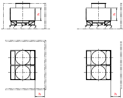 ※hは性能上の必要離隔距離です、設置検討時はメンテナンス上の離隔も考慮する必要が有ります。