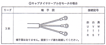 図 1モータ端子詳細図を参照し外部導線の引込みを行ってください。
