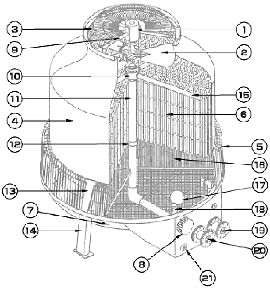 | 7 | 下部水槽 | 18 | オーバフローパイプ |