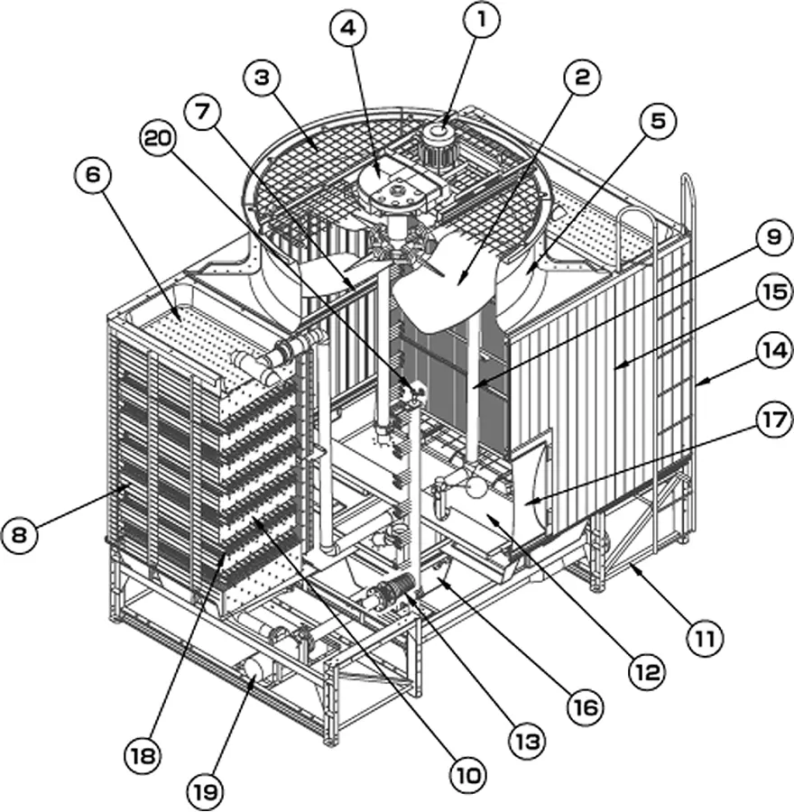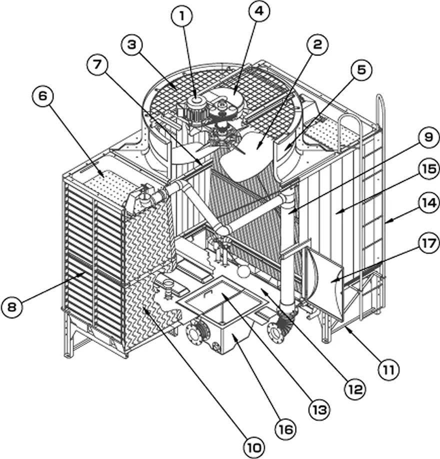 | 1 | 冷却塔用モータ | 12 | 充てん材受け |