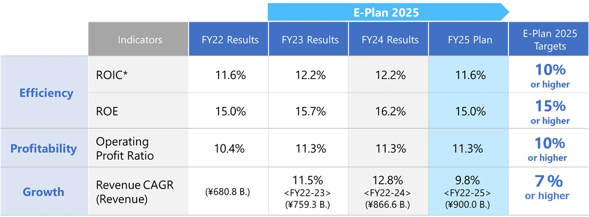 In February 2023, we announced E-Plan 2025, our medium-term management plan created by backcasting from our long-term vision, E-Vision 2030. This plan aims to resolve outstanding issues from E-Plan 2022 and serves as a strategic roadmap to guide us toward our future goals. The central theme of E-Plan 2025 is “Business Creation: Creating Value from the Customer’s Perspective”. Throughout these three years, we will strengthen competitiveness across all business segments and finish transitioning our organizational mindset from product-out to market-in.