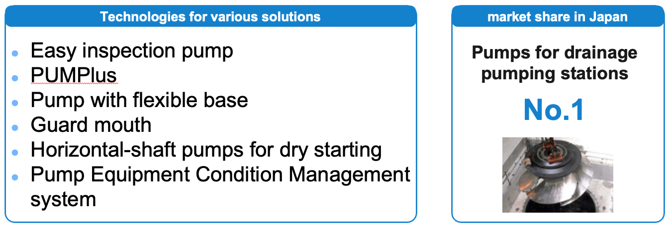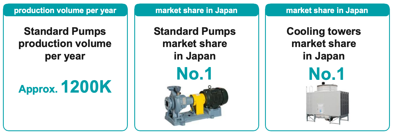 We offer a wide range of pumps, blowers, chillers and cooling towers to meet a variety of needs, including the water supply and drainage that supports daily life, heating and cooling, and ventilation of air in buildings and commercial facilities, the transportation of various liquids used in factories, and cooling in production processes.