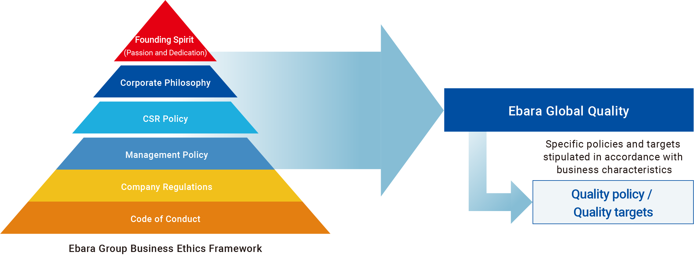 Senior management in each area of business will specify a quality policy, i.e., specific policies to achieve our stated goals based on Ebara Global Quality, and it will transform that policy into quality targets in documents such as the medium-term management plan.
