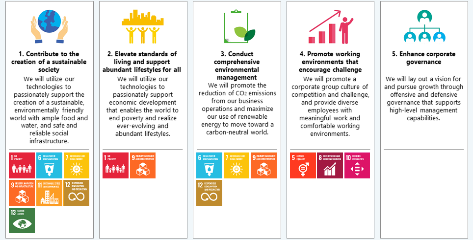 The EBARA Group aims to further our contributions to the SDGs and help realize an inclusive and sustainable world through the pursuit of solutions to our identified material issues, while simultaneously increasing the social, environmental, and economic value we generate. We believe this will earn us greater corporate value and recognition as an excellent global company.