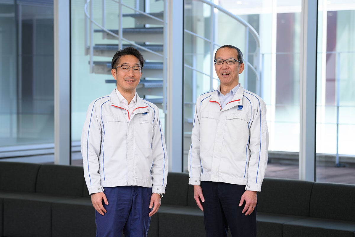 Takashi Yamakawa of the Manufacturing Technology Development Department, Production Process Innovation and Quality Assurance Division, who leads EMTAC, and Hiroyuki Kawasaki of the Industrial Business Development Department, Development Division, Construction & Industry Company, who initiated the prototype project, talked about the background and the value of EMTAC.