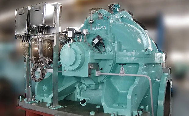 符合API610标准的北美乙烯厂用水平轴双桶多级泵。这是为电厂发电用锅炉供水的重要设备。这是一款双壳泵,易于维护。