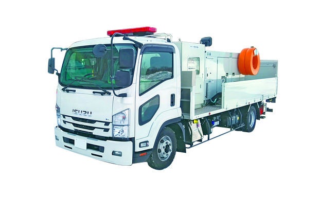 这是一种灾害应急车辆,配备了排水泵、操作面板、发电机、排水软管等必要设备,装在排水泵卡车中。