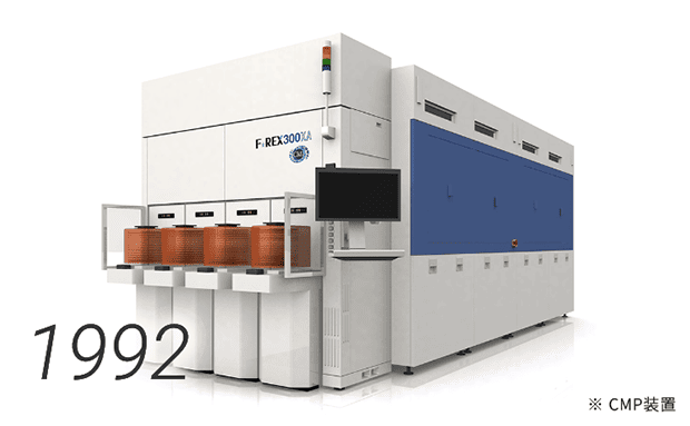 荏原开始开发CMP系统,以支持半导体的小型化和多层化,使得电子设备和工厂机械越来越小。