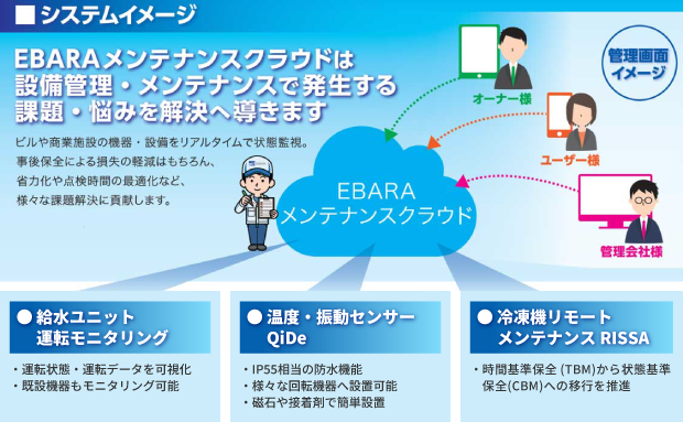 長年機器の開発と保守を担ってきた当社だからこそ構築できたIoTの取り組みであり、施設内点検のDX(デジタルトランスフォーメーション)とも呼べるEBARAメンテナンスクラウドは、2023年末時点で全国で690台にQiDeを設置している段階です。設置できる機器はポンプだけで予測しても1,000万台。さらに多くの荏原の機器へ、そして当社の機器のみならず、他メーカ様の機器にも使用されることで、いままで人力で行うことが常識であった施設内の点検がまるごとIoT化される「スマートビルディング」の実現を目指しています。