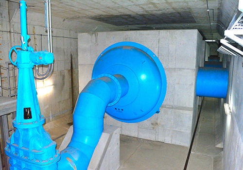 施設所在地:千葉県印西市、柏市 最大吐出量:北千葉揚排水機場 揚水40㎥/s、排水80㎥/s :北千葉第二機場 40㎥/s 設置台数 :北千葉揚排水機場 10㎥/s×5台、30㎥/s×1台 :北千葉第二機場 5㎥/s×2台、10㎥/s×3台 型 式:北千葉揚排水機場 立軸渦巻斜流ポンプ 口径3600mm(30㎥/s)エンジン駆動 口径2000mm(10㎥/s)モータ&エンジン駆動 :北千葉第二機場 立軸渦巻斜流ポンプ 口径2000mm(10㎥/s)モータ駆動 口径1500mm(5㎥/s) モータ駆動