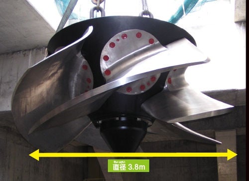 直径3.8mもの羽根車が地下神殿に集められた水を江戸川に流します。
