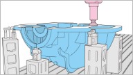 工作機械や切削工具を用いて材料(金属やプラスチックなど)を目的の形状に加工します。さまざまな形状のものを高精度で作り出すことができ、製作する形状に応じて、加工方法や用いられる工作機械が異なります。