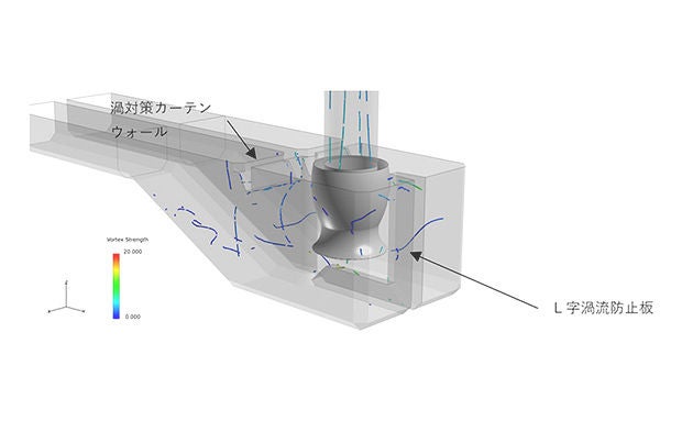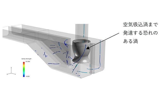 流れ解析による精度の高いポンプ吸込水槽渦発生予測