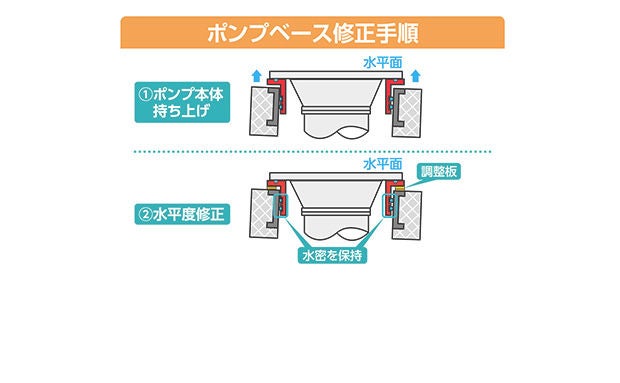 水密を保持したまま容易に水平度の修正が可能なポンプ