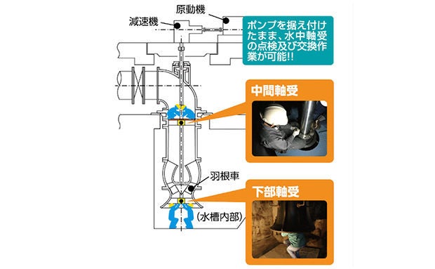 水中軸受の点検・交換作業が容易なポンプ