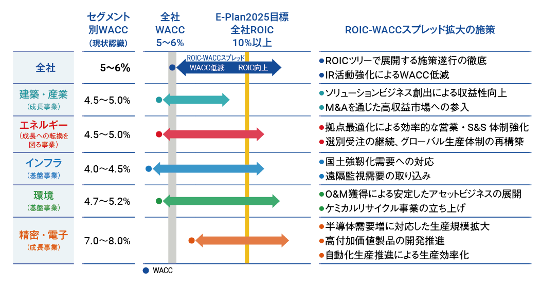 WACCを上回るROICの維持・向上と、ROIC-WACCスプレッド拡大につながる事業戦略及び資本政策の実行により、持続的な企業価値向上を目指します。