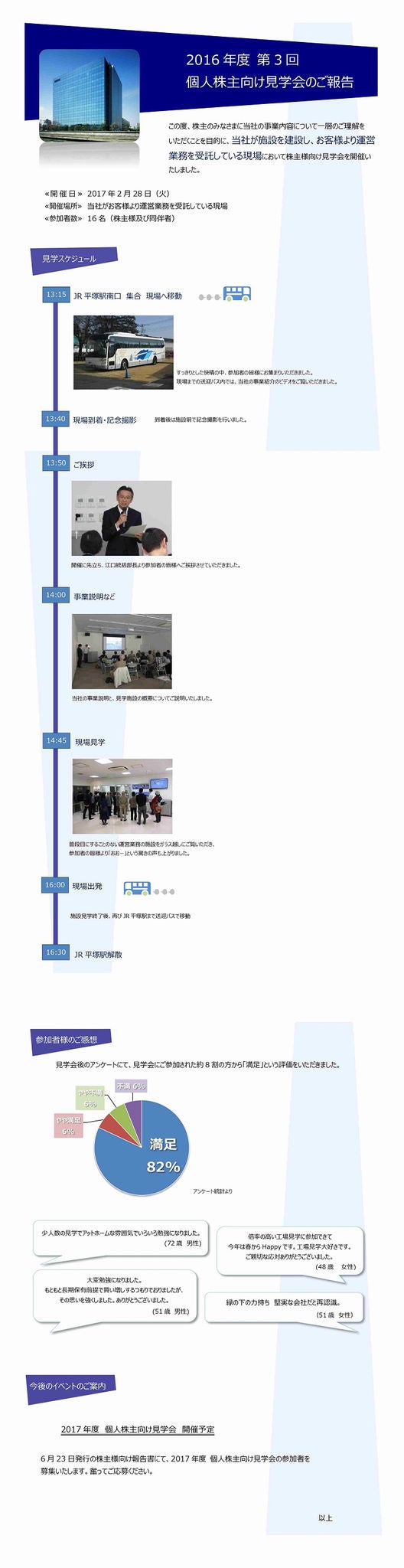 2016年度 第3回 個人株主向け見学会のご報告