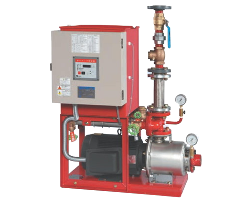 - 配管内圧力が低下すると、消火ポンプが始動する前に補助加圧ポンプが自動運転し、配管圧力を回復させます。