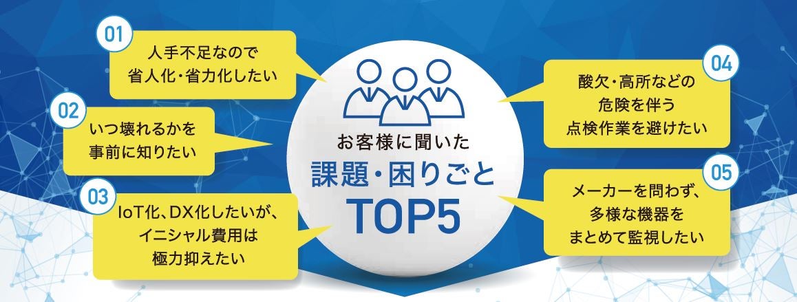 事後保全による損失の軽減はもちろん、省力化や点検時間の最適化など、さまざまなソリューションをご提供します。