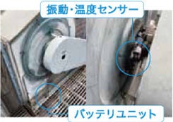 荏原が独自に開発した小型振動センサーです。サイズが合わずに取り付けられなかった場所にも対応しやすくなりました。