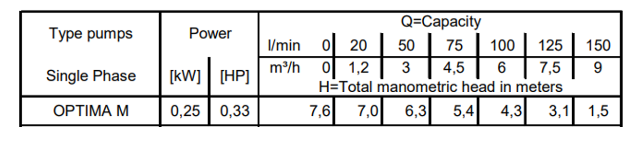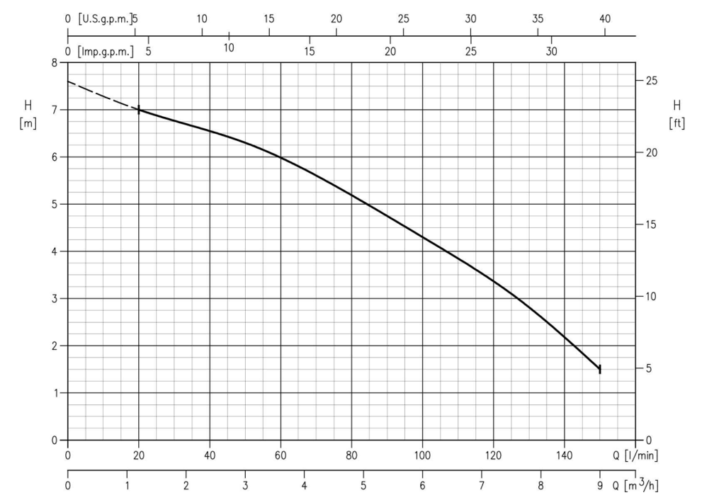 | Altura manométrica | De 1,5 a 7,6 m | |