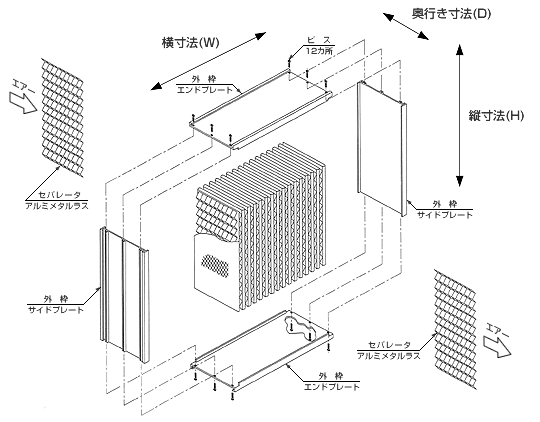 | 寸法 | 横寸法(W)、縦寸法(H)及び奥行き寸法(D)は自由に選定できます。 詳細はご相談ください。 |