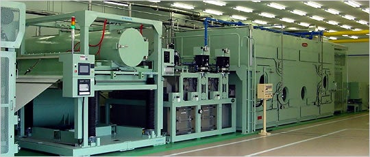 荏原製作所と日本原子力研究開発機構(量子科学技術研究開発機構と改組)は、不織布などのシート形状の高分子成型品に、電子線を照射した後、反応性モノマーを決まった量含浸させることでグラフト重合反応できる「放射線グラフト重合の連続加工プロセス」を共同開発しました。当社はこの方法の実施許諾を受けて各種機能性材料の開発及び製造を行っています。