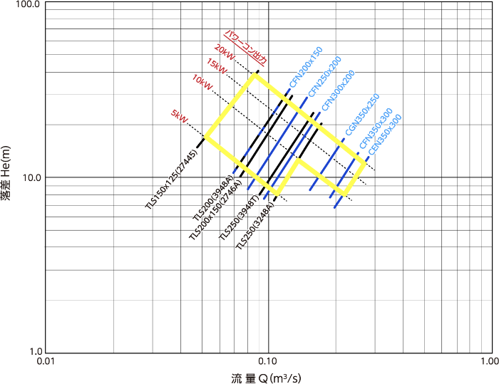 水道設備、農業用水路など、豊富な実績を持つポンプの特徴を生かして、高落差から低落差まで、多様な設置環境に適合した逆転水車の選定が可能です。