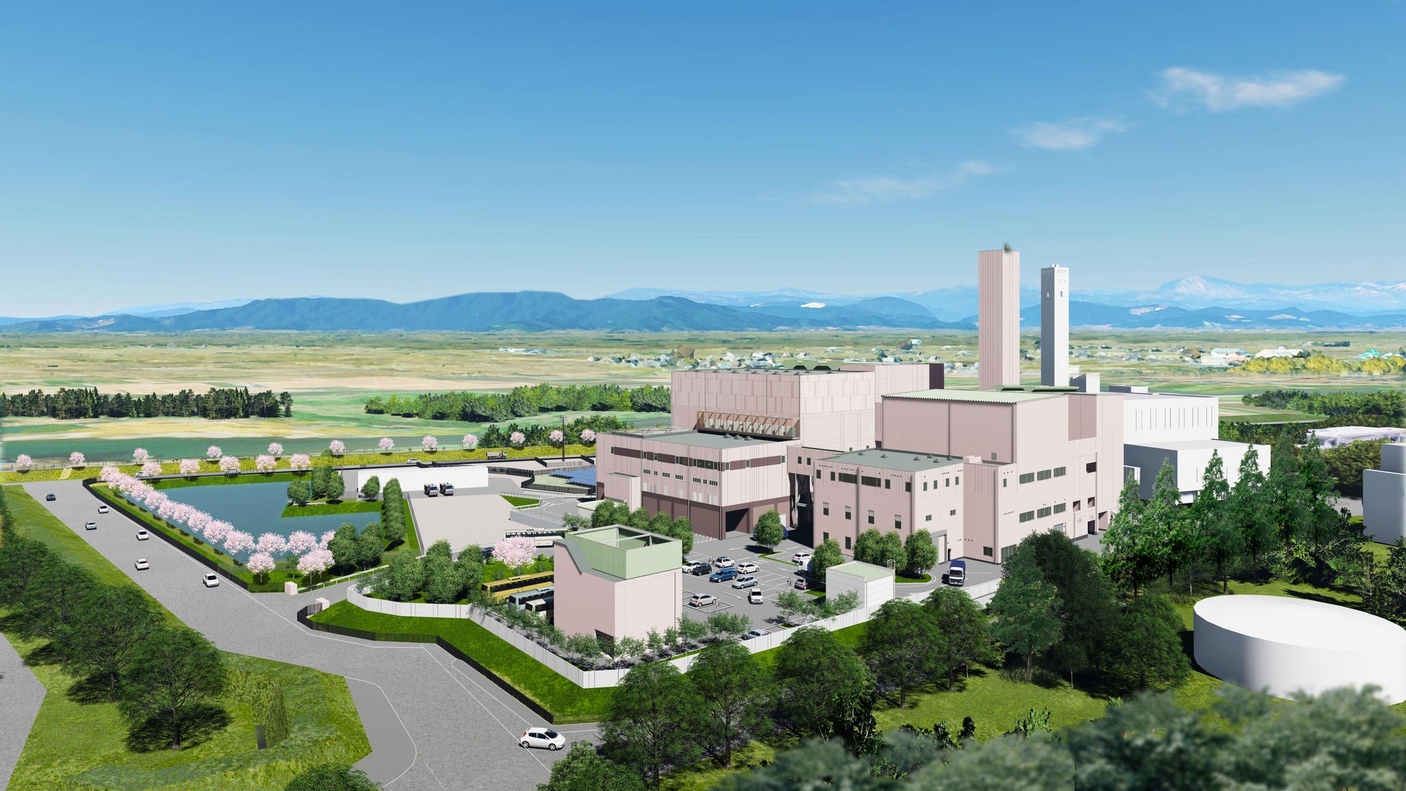 本施設では、ごみを焼却処理する際に発生する熱を利用して発電を行い、得られた電力は施設内の動力などとして利用したうえ、余剰電力を売電します。再生可能エネルギーを最大限有効利用することで、CO₂削減に寄与し環境負荷の低減を図っていきます。また、地域の防災拠点となる災害に強い施設を目指します。今回の受注にあたっては、当社の豊富な実積だけでなく、当社が建設を行った第一期工事の焼却施設との連携によるごみの安定処理の工夫、ごみ量・ごみ質の変動対応やエネルギーの有効活用の面においても高く評価されました。