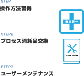 装置の操作からメンテナンスの方法までの技術習得をサポートする標準のトレーニングコースの他、