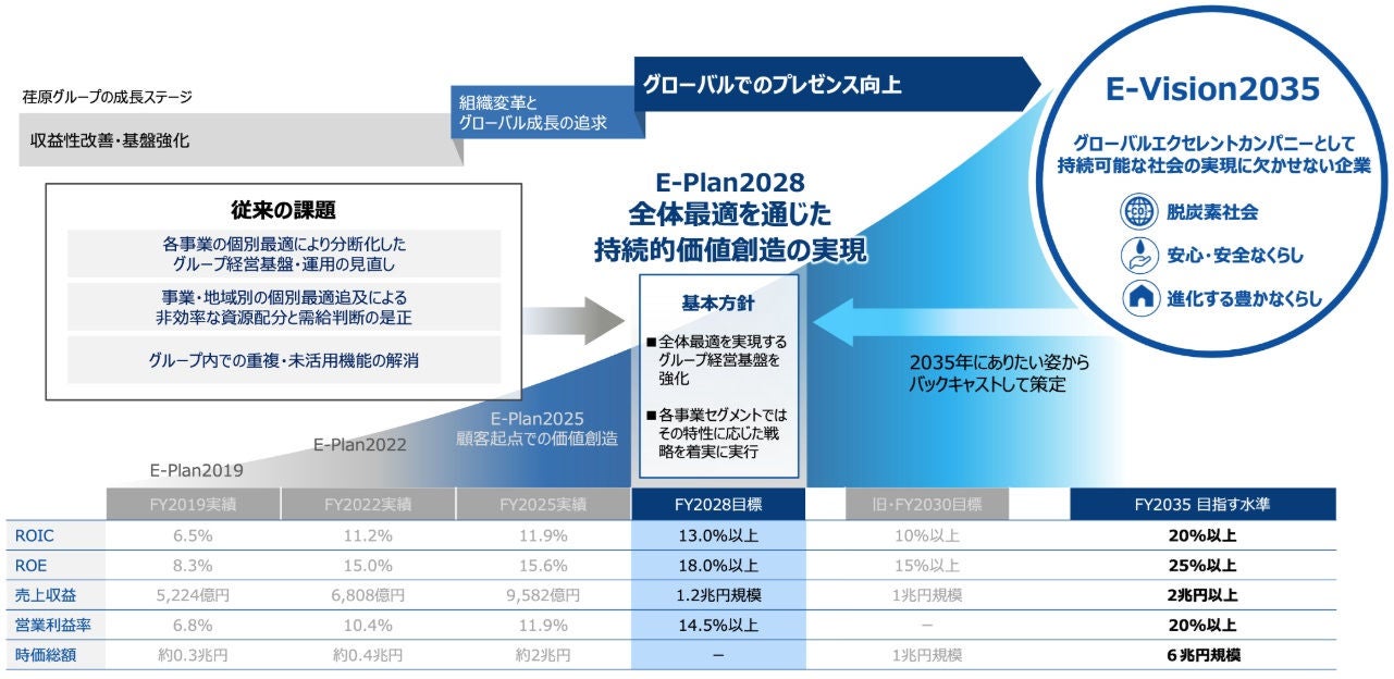 荏原グループは2035年にありたい姿として長期ビジョン「E-Vision2035」を、そしてその実現に向けた最初の3カ年の計画である中期経営計画「E-Plan2028」を策定しました。
