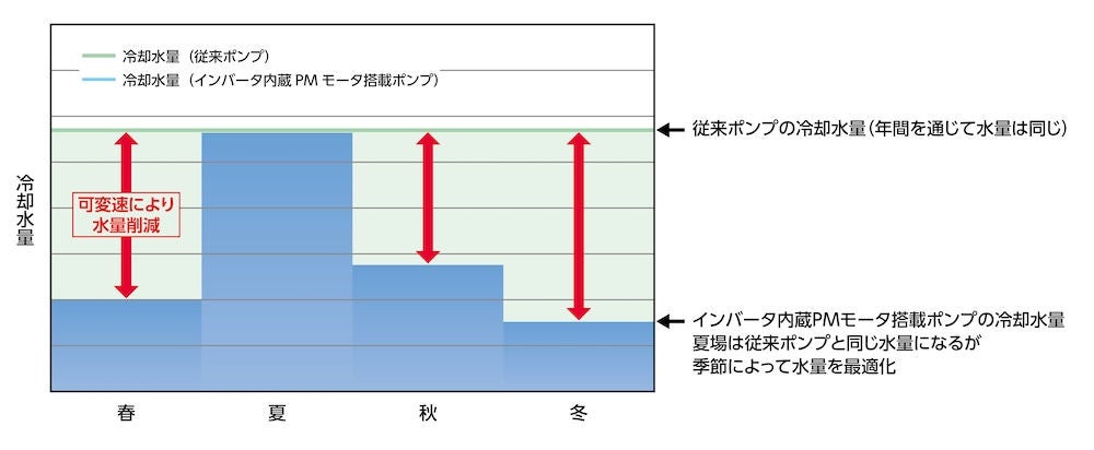 「インバータ内蔵PMモータ搭載ポンプによる省エネ効果」